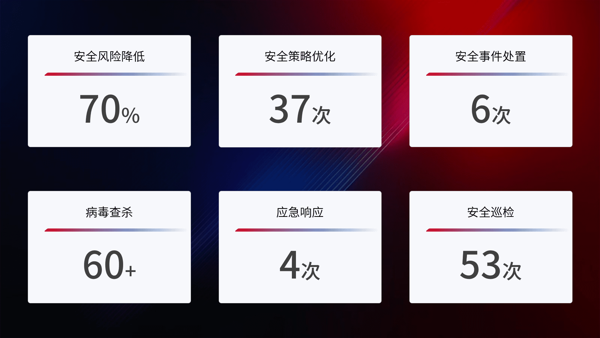 综合报告与文档服务: 定期提供安全事件处置报告、、、、周/季度总结报告和年度总结报告;详尽的文档服务可帮助客户了解网络安全状况,,,支持决策制定和流程优化。。